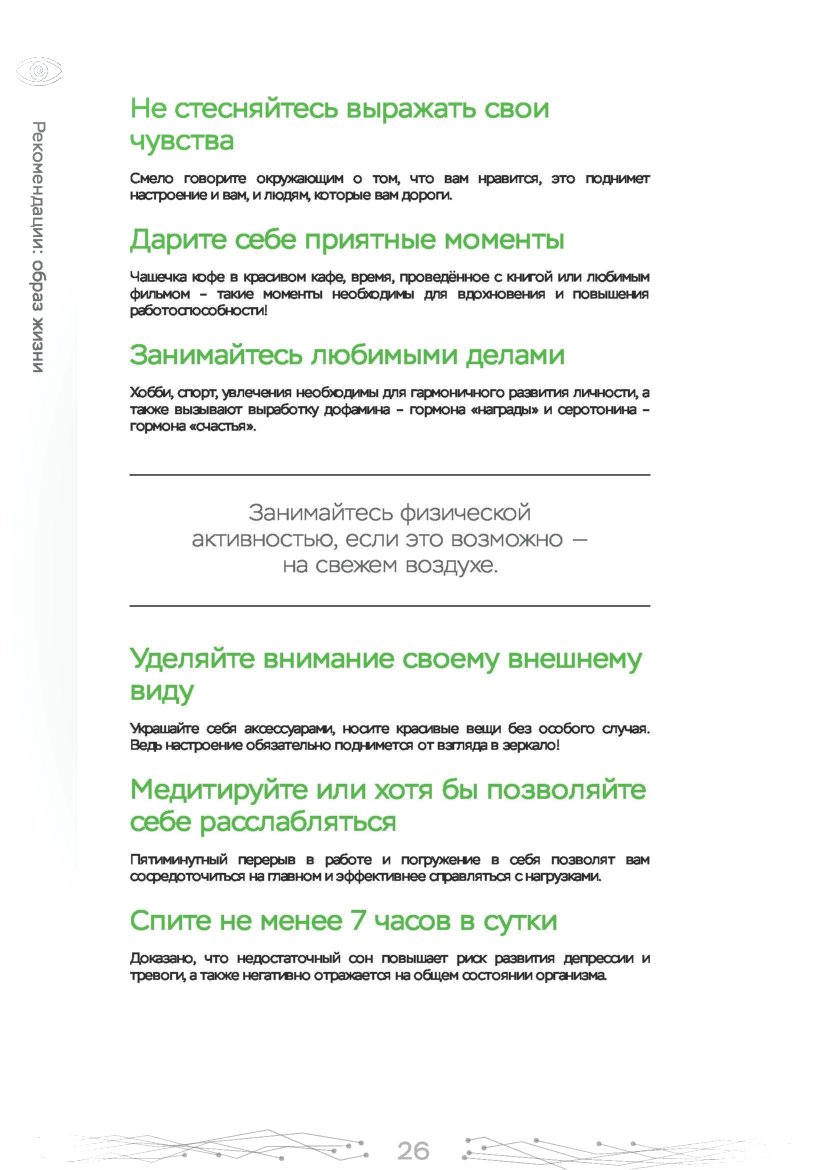 - Рекомендации по питанию, улучшающему работу мозга.